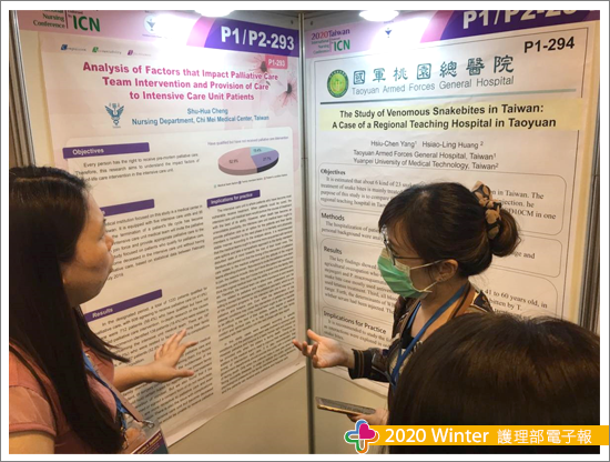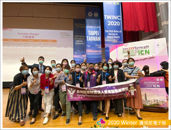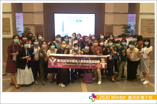 個人在此次國際型學術會議交流中,與過去最大的差異,則是以護理部研發委員的角色參與此次會議,深深感受到護理部對於護理同仁於國際會議發表的重視,以及如何行銷奇美,提高奇美人的能見度,在每一次的研發會議中腦力激盪,從3D列印印製名牌發想直至LED名片型跑馬燈胸牌的定案;會議進行前,護理部研發則邀請與會同人加入「TWICN 2020奇美發表隊」之line群組,並於群組中推波發表前、中、後注意事項,並積極安排奇美人海報展示口報時間,由研發主席柯雅婷督導引領與會同仁,依時段引領著護理夥伴在此次的國際學術交流中,嚐試於海報前向各位與會的貴賓進行口報主題分享,在面對提問時從容不迫地應答,在在展現奇美護理人的軟實力與真功夫。
