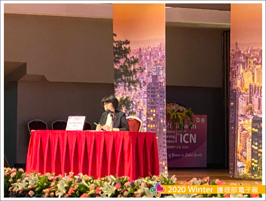 2020年9月9日第一天的開幕典禮,邀請宋寬傳藝進行「女神鼓表演藝術」,美麗的水袖與擊鼓舞蹈,在傳統創新間,讓與會的我們享受了一場絕無僅有的視聽覺饗宴。其中特別的迎賓活動,是以「環保時裝秀」串聯,展出之服裝原料皆以回收寶特瓶100%製造,降低環境污染與地球共存,與疫情衍生經濟停滯後空汙減少所降低的環境危害,有著異曲同工,別具深遠的意義。與會貴賓陳時中部長,分享臺灣落實全民健康保險制度的國家經驗進行專題演講。2020年9月10日第二天其中的主題演講中,由台灣護理學會黃璉華副理事長針對台灣Nursing Now三大主軸,包括護理躍動、政府啟動、民眾感動,如同疫情下的醫護一體,民眾齊心,護理人的絕佳行動力創建無限可能。2020年9月11日第三天蔡淑鳳司長呼應2020全球性護理運動,從投資護理開始,未來2030之護理人力規劃,從醫院推展至社區,是具有前瞻性的創建。此外,護理部江惠英副部長於此次國際學術會議中,擔任座長主持五位來自各國專家學者之學術座談,整場會議串聯與絕佳時間掌控,讓與會者可以順暢且充分的與國際學者進行無縫接軌之線上交流。