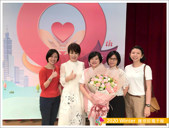 今年9月5A李怡珍護理長榮獲第九屆南丁格爾績優奉獻銅獎,很榮幸可以加油團的身份一同出席參與第九屆南丁格爾頒獎典禮,共同見證怡珍護理長此份榮耀,從一開始頒獎典禮會場的佈置就可以感受主辦單位的用心與重視,由新聞主播陳雅琳擔任典禮主持人,前副總統陳建仁先生、現任副總統賴清德先生及陳時中部長擔任團體獎頒獎人,個人獎則由上一屆的獲獎者擔任頒獎,這也代表意味著護理的傳承,同時考試委員王秀紅、台灣護理學會前理事長盧美秀、現任理事長陳靜敏、全聯會高靖秋理事長以及許多護理界的前輩、各家醫院的院長和眾多政府官員、企業界的嘉賓也都出席參與此盛會;而當天人在台北的馬淑清部長、劉憶萍部長以及中山醫院的李秋香前副院長,還特別利用開會空檔前來幫怡珍護理長祝賀。