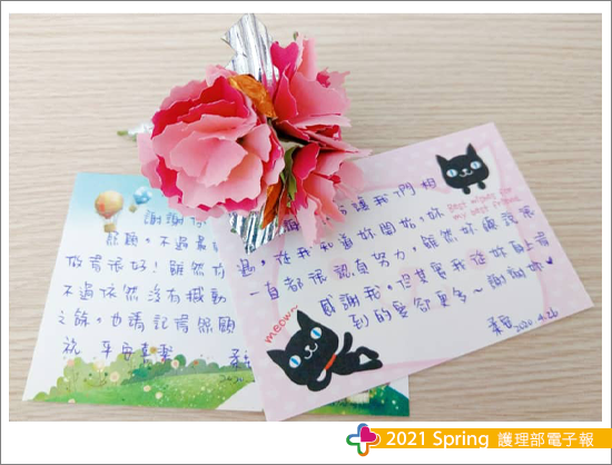 防疫期間限制訪客,她先生說她怕吵,總是要求固定的時間讓我們進去做治療,有次不小心看到趴在她床旁童言童語的小女孩,我告訴她小朋友到醫院要注意戴口罩跟加強洗手,其他的我什麼都沒有看見。之後的每一天小女孩回家的時候都會和我說謝謝跟再見。由於分艙分流的關係,慢慢習慣熟悉彼此的治療計畫作息,她先生也不再限制我固定治療時間,我們開始會閒聊,會玩笑,每次都說捨不得我放假卻又心疼不讓我好好休息,她先生總叨念她比較聽我的話所以他吃醋。