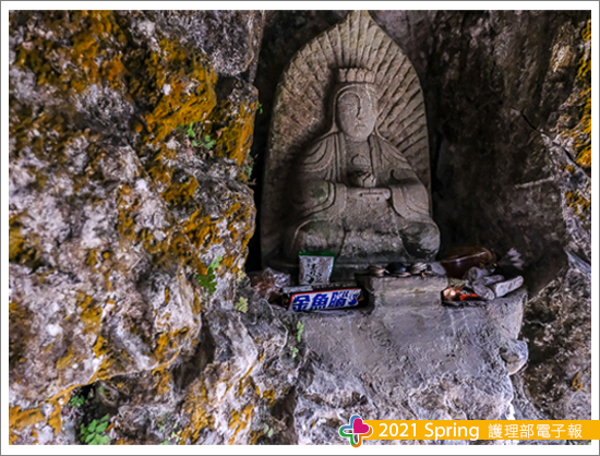 近錐麓斷崖的隧道中,在山壁上有一個雕刻出來的觀世音佛像,登山客會放上供品來祭拜。根據網路上的資料記載,這座佛像是在日據時代就已經雕刻好,守護著這個區域,未來有機會探訪的山友們,別忘了誠心膜拜,祈求山神庇佑旅程能平安。在這兒給想要嘗試的山友們溫馨提醒,整段步道3.1公里,沿途沒有廁所也沒有可以取水的地方,沿途都是上坡,在夏天真的要準備充足的飲水再上山,雖然上山時可能會因此增加負重,但為了欣賞這個不可多得的大自然景觀,一切都值得。