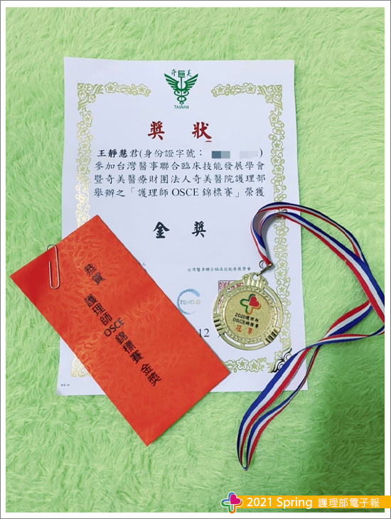 最後,非常鼓勵大家可以自行主動參加這類的活動競賽,雖然在臨床上執行護理技術的次數不計其數,但藉由這個競賽,可學習到更多的東西,也可校正自己一些錯誤的觀念,而像我這樣缺乏自信的人都可以成功完賽了,潛力無窮的大家,相信也一定可以。