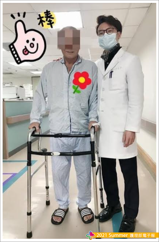 一路走來急診團隊秉持著發揮所學、盡力救治每位病人的信念默默的努力著,某天遠方捎來一則喜訊,那位突然倒下,在院外CPCR反覆VF電擊多次的廟公伯伯走著出院了,猶記當天在急救區為廟公伯伯進行ECPR的畫面歷歷在目,相信當下每一位成員的終極目標都是將伯伯從死神的手中搶救回來……,看著廟公伯伯手握助行器一步一步平穩的昂首前進,微笑面對鏡頭拍照,這一幕彷彿為急診團隊注入一劑強心針,也是讓急診團隊不畏艱難持續堅持的動力,隨著經歷ECPR後能恢復生活功能成功出院的案例越來越多,急診團隊也一點一滴地築起信心的堡壘,讓我們不後悔選擇成為急診人,所以,我要大聲的說:「我急診,我驕傲!」。
