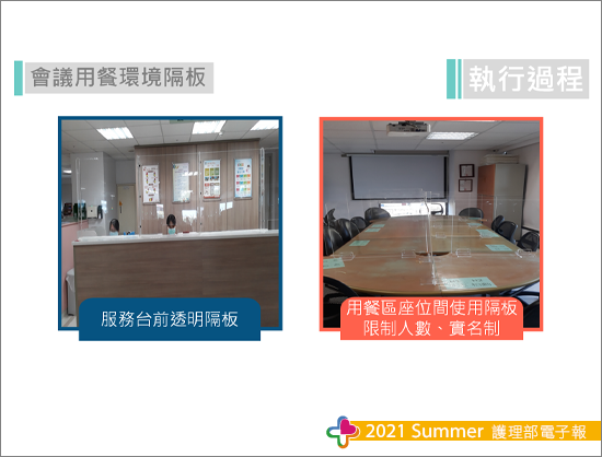 (4)每個透析區及會議、用餐環境增設隔板避免飛沬噴濺