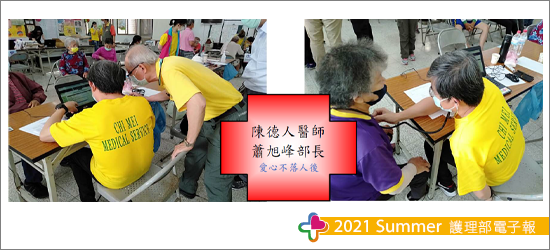抵達目的地後,可愛的鄉民已在門口引頸期盼我們的到來。負責居家訪視的陳季杏醫師及護理師在總幹事的引領下,前往探視因失能或疾病特性致外出就醫不便者,給予醫療照護、居家關懷與用藥安全衛教;其餘的夥伴們齊力將所有的醫療用物卸下後,分工合作地將活動中心打造成一個小型的奇美行動醫院(包含檢傷區、掛號區、候診區、看診區、中醫治療區、物理治療區及領藥區)。熱忱的夥伴們各司其職,永康扶輪社的夥伴也加入我們的行列,共同引導民眾進入就醫程序,並適時地給予關懷與協助。