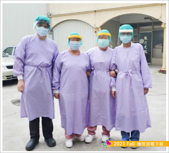 頂著烈日高溫,身穿厚重密不透風的防護衣,在整天的居家醫療訪視下來,我們穿脫隔離衣可能高達七、八次,且外科口罩有可能因為汗水潮濕換掉四個,更有可能在中午時段,必需先返回醫院更換汗水浸溼的制服等等等辛苦過程,我們感念「全島一心,全力防疫」,當社區長者有需要時,我們看見自己的責任,勇於付出,義無反顧。我們的醫護團隊在社區裡默默付出及堅守岡位,讓我們大家為台灣共同努力下去吧!