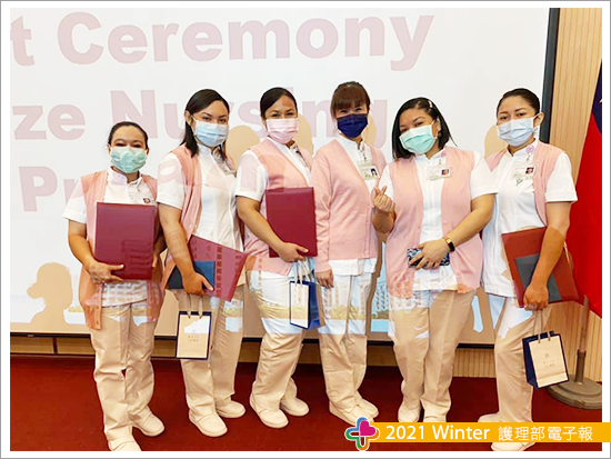 貝里師的好朋友們,我喜歡你們的學習態度還有每天早上熱情的問候及下班後的再見都是讓單位同仁很暖心的地方,雖然語言讓同仁有時遠遠看到便快速逃離,深怕一句問候擊垮不知所措回答的同仁,但了解她們的我們,知道即便不懂她們說什麼,但是眼神、手勢,加速知道她們的需求,加速認識彼此,可惜室疫情不能帶妳們趴趴走, 而國際護士節有妳們的參與倍感熱鬧,更增添不一樣民族的色彩。