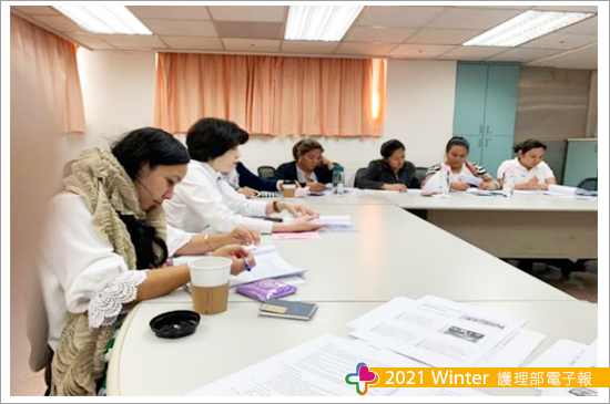 學員一個個不斷的學習,一直不斷地在每一個科裡面精進,而我們的護理人員也因為語言的不一樣而精進自己的學習,勇敢說英文,勇敢跟外國人打招呼,為了是讓彼此在不同的專業領域上都能得到很大的學習空間,而每一個人的專業領域上都有值得我們台灣人效法的地方,雖然語言上的溝通有某個程度的障礙,但是只要一個眼神一句簡單的片語他們就可以知道你在說什麼這是值得讓我佩服的地方,每個國家挑選出來的菁英,能在國際上讓大家不失所望是我們嘆為觀止的。