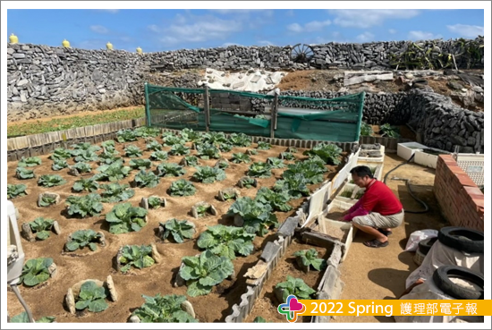 很快的到了吉貝島,民宿業者熱情地向我們招呼,告知只有我們一組遊客,不需太拘束,當自己家就好~放好行李騎機車環島囉~民宿老闆娘很熱情的帶我們去參觀當地古物:龍喉、東方龍馬、西方石敢當,以及她的菜園,疑~為甚麼菜旁邊都會有一道小矮牆?老闆娘說:「因為這裡風很大,需要石牆來保護農作物」,爸爸活潑地要我幫他拍照,要跟朋友說他到吉貝種菜,哈哈!一路上不斷被大風吹,安全帽快飛了,頭髮都亂了,眼睛都乾了,但出遊的興致仍不減~一路上僅看見當地居民,沒有看見其他遊客,彷彿整個島都被我們包下來了呢!