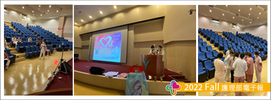 楊濘綺護理長身為國際護師節活動召集人,經由每個月密集討論與腦力激盪,完成擬定實體活動初稿,但隨著時間流逝,疫情持續升溫,4月份護理部決議由實體活動調整成線上直播。由於委員會首次嘗試活動直播,5/4 預演當天模擬正式的直播規格,活動主持人按照流程預演,雖然大家都沒直播經驗,過程中遇到很多問題及阻礙,但為了滿足同仁線上的視覺饗宴,夥伴們一一克服,齊心努力一起完成這次活動,心裡是滿滿的感動!(圖三)然而,疫情如同火山般一發不可收拾,活動前一週院方擔憂即使僅有50人內的直播現場,為了降低同仁交叉群聚及接觸時間,故忍痛決定取消直播方式,改用LINE群組與E-mail推播、快閃送上優良人員獎狀與獎品。