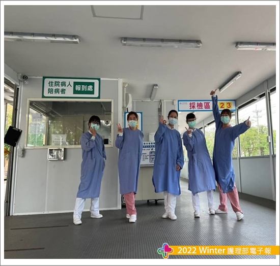 COVID-19猶如龍捲風襲擊全球,從2020年開始它以迅雷不及掩耳的姿態在不同國家迅速擴張,被它橫掃過無一倖免,如何從中阻斷、減災、預防、重建正考驗國家領導者的智慧,每一個政策牽一髮而動全身,無不步步為營。病毒無所不在,伺機感染無差別性對待每一個人,可想而知每個人生活好比在壓力鍋裡,壓力無處釋放,而身為醫療人員的我們本承擔不小的壓力在面對不同的醫療情境,臨機應變已是家常便飯,但未曾有過說變就變,滾動再滾動的政策,如何因應?是難上加難的課題,而我們有著共同的目標就是醫治被感染者、防止院內感染,本著醫療是最後的一道防線,在它攻我防的情況之下我們不能被打敗,我們要守護民眾及工作人員的健康等意念支持著我們。大家發揮同舟共濟,人飢己飢,人溺己溺的精神,相互扶持相互安慰著。