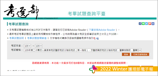 高考準備時間有限,集中火力準備考試學科,才能爭取更高的通過機會。助產師考試科目─基礎醫學、基本護理學、各科護理學、助產學(一)、助產學(二)共5項,我採用線上查閱歷屆考古題進行考試練習,考選部的應考人專區由提供歷年考畢試題的題庫(圖3)。規劃一張時間表,安排1到6月看的5項科目儘可能在準備期間內,將這5個科目的考題進行測試,即使考試日期逐漸逼近,也不會陷入無頭蒼蠅的窘境。