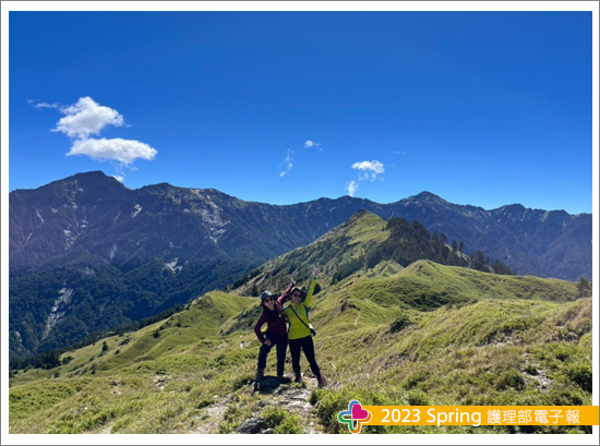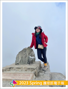 我想有在護理臨床工作的人,剛到一個單位最在意的就是帶自己入門的臨床教師了吧,當我看見我的臨床教師蘇瑄雯護理師一頭金髮、年輕貌美、帶有刺青想必一定很颯爽,內心湧起很多的期待,再看見他與病家相處、對談,果真樹立臨床教師的模範,那可是溫柔、有耐心同時不失專業。在內心暗喜有一個這麼棒的臨床教師同時,後面可是排山倒海的學習,十年的舒適圈要邁入另一個全新的領域,果真學習令人沮喪,自己操之過急的心更加重了無力感,我的臨床教師能敏銳的感覺到我的問題,適時與我討論找出更好的學習方式,不吝於與我分享她的秘笈,我們可談心也可談學習如何能更好,她說我是她第一個學生,更希望自己不要讓老師失望了。「第一個」學生讓人感覺緣分滿滿,很多的第一總是令人印象深刻別具意義,不能當滿分的學生,也要當個印象深刻的學生!在調任學習步上軌道後,難得我們師徒可一同預假去遊玩,我們相約爬山-合歡群峰兩天一夜-,路上的一切讓我們師徒成為一幀幀的回憶,感謝自己跨出舒適圈、感謝我的臨床教師,在校園畢業後十多年能當一位老師的第一個學生,何其幸運!