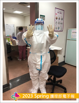 在今年五月疫情再次升溫、不斷擴大,醫院為提升醫療量能,開始對內招募採檢班、疫苗班、專責病房護理人員及照顧服務員。在得知招募消息後,經單位主管同意,自己主動報名專責病房護理人員。因疫情快速擴散,五月底經單位主管通知,自己被錄取至專責病房支援,得知將至專責病房上班時,內心是相當緊張,雖然是自願報名,內心還是相當忐忑不安,確診需要住院的人數超過想像,醫院的專責病房一間一間的開,除了擔心自己是否會染疫,影響到其它人,也擔心工作內容是不是能夠勝任,以及工作氛圍…等等。單位主管看出我的不安,便告訴我,去專責病房工作時,要專心、小心、不能浮躁,穿脫PPE時,一定要遵守規定和流程。