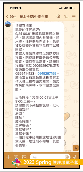 自己撐過五月疫情大爆發,在6月中施打新冠疫苗第二次追加劑,原以為自己是COVID-19的絕緣體,可以全身而退,萬萬沒想到,仍然避不過確診命運,至今仍然想不出來確診來源。因家裡環境及家人均屬於免疫力低下之洗腎患者,因此申請了集中檢疫所,台南市政府衛生局安排我就近至鹽水的集中檢疫所,在集中檢疫所隔離整整7天,過去曾爆出集中檢疫所的負面新聞,提及住集中檢疫所沒有自由,在那就像在坐牢、環境不好、伙食不好…等等。