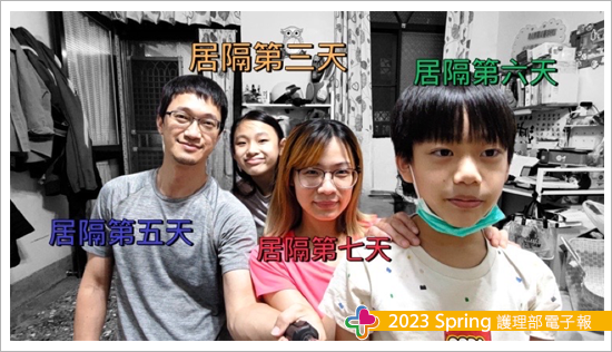 這時,真的要大聲讚揚「視訊診療」的衍生及存在。確診後家人身體的症狀不盡相同,想緩解身體不適、又擔心MIS-C(兒童多系統發炎症候群)併發症,我偏向中西醫合併治療,在無法外出就醫的困擾下,視訊診療的優點是:向鄰近的醫療院所撥打電話掛號、手機收到視訊診療連結訊息,雙方開啟視訊畫面後,核對身份、截圖本人及健保卡畫面、出示快篩陽性試劑等以上步驟,醫師便開始問診,過程不急不徐,醫師清楚交代重症兒童的症狀,以及送醫指引,面對循環式高燒、退燒也指導退燒藥物的用法,若同時服用清冠、類清冠中藥,衛教中藥副作用與服用西藥間隔的時間,視訊診療確實達到看診、治療的目的,而非無意義的視訊,藥物取得也能透過第三人的協助,解決無法外出領藥的困境,對確診者實在很受惠、便利,無異是一大福音。接著,跟先生提議拍一張確診家人照,記錄我們經歷抗疫、確診Covid-19,身體再康復的模樣(圖六)。