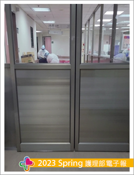 2022年的6月,因疫情爆發的關係,來到了專責病房支援,因為自己單位人力的關係,我是第一個去支援的人,在還沒進入專責單位時,總覺得那裏的世界是不是已經與一般單位與世隔絕了,各種想像但總是沒有答案,帶著緊張的心情,踏入了「專責病房」,親眼見證了專責的樣子,有著像精神病房一樣,四處被圍起的玻璃窗門,窗門裡有許多穿著兔寶寶裝的人在裡面走動,因為要全身包緊緊,所以兔寶寶裡的真面目都看不出來,玻璃窗另一邊則是一般的護理站。