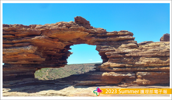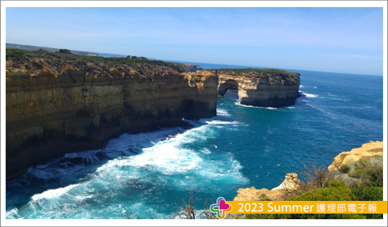 來到了大洋路,大洋路有著最美公路之稱,一邊是陡峭的山壁、另一側是寬闊的海景,從貝爾斯海灘到阿波羅海灣,再到十二門徒看日落,去阿德湖峽聽著落難者的冒險故事,再去倫敦拱橋看澳洲人口中的倫敦斷橋(圖四)。然後就是寂寞公路,沒有網路訊號,周圍瀰漫剛熄滅的森林大火的味道,還有可能隨時衝出的路霸-袋鼠,陽光刺眼,伴隨視覺疲勞、無止盡的公路,從南澳到西澳,到了Rottnest Island,跟微笑袋鼠打招呼,去了世界之窗(圖五)跟蒼蠅比速度,到尖峰石陣,讚嘆石灰岩石的演變。