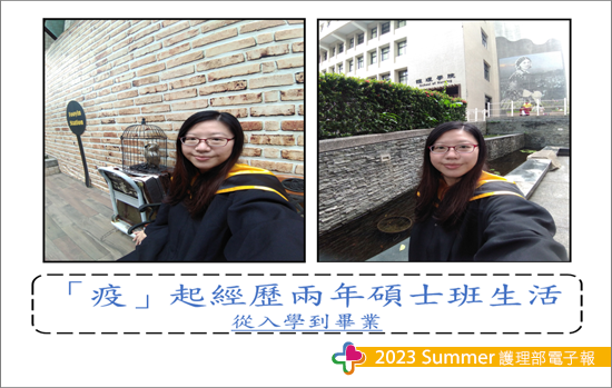 從沒想過在念碩士班的期間,竟然會遇到新冠肺炎疫情來攪局,一邊適應碩士班的課業,一邊臨床實習,還要一邊應戰疫情的一波波攻勢,醫院政策亦隨中央政策每日滾動式改變,每日上班除了處理病人問題,還要隨時提高警覺觀察病人與家屬是否有新冠肺炎症狀,學校則是依疫情滾動式調整,疫情趨緩時便返校進行課室學習,疫情擴散時則改為遠距教學,而同學們來自不同醫院,即使在校碰面,仍要保持社交距離,口罩戴好戴滿,就怕彼此成為防疫的破口,但往好處想,來自不同醫院的我們,可以彼此交流疫情現況與醫院政策,集思廣益之下,有時可以為自己醫院找到更適合的防疫方式。