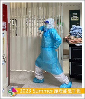 目前我們單位仍間斷的發生確診病人,依然有同仁陸續確診,在仍然艱辛的環境中,我們仍堅守崗位,互相鼓勵、堅持著,期盼病人與家屬能感受到我們的專業與關懷,在這三年疫情期間,令我深刻體會到,在面對疫情肆虐,醫護人員更應團結,互相支援、互相關懷,也感謝護理部每個默默付出不求回報的單位,因為有這些無名英雄的付出及配合,才能成就專區病房的運作。護理人員不分你我,團結一條心的精神,讓護理照護團隊能力更強大,增強彼此的能力及互相學習、活用各領域專業知識,有效的對抗病毒入侵,組成一個另類的跨領域防疫戰隊!