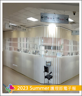再次歷經人力招募、環境改造、衛材設定…等,有了過去的經驗讓我更得心應手,原本心想在人力召募上應該會卡關吧!殊不知經一一會談及說明後,單位學妹們卻沒有人拒絕我,且願意與我「疫」起面對,一起同上同下,安全下庄,讓我心中感動不已,醫院有你們這群護理尖兵「疫」起面對,我想疫情一定OUT。後續也因疫情指揮中心徵收的速度計畫來不及變化,單位的改造無法比照前二個專責病房,讓人員一度感到工作環境安全的疑慮,經過護理部部長及督導幾番努力與工務室討論後,單位雖沒有電動門、沒有抽風設備也沒有強化玻璃來阻隔,單位有的是手動塑膠拉門、病室微負壓、護理站微正壓、對講機、監視器…等,我們的設備很簡易,但我相信我們不會因為沒有電動門或簡易的設備就染疫或放棄,經過多次走位及說明後,人員也慢慢能理解且接受,在抗疫的路上,我們一起相廷並肩作戰,即時汗水滲透我們的隔離衣,N95壓傷了我們的臉,我們也不輕言放棄直到再次回歸一般病房。