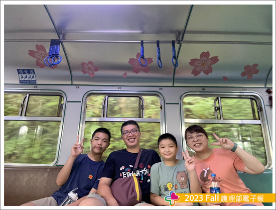 在路上遇到了法輪功的傳教員,他們很熱情的與孩子們聊天,並送給他們結緣的蓮花水晶吊飾,孩子們很開心的跟他們道謝。我們繼續往前進,沿路上看到了子女們攙扶著高齡的母親前進,後面還有家人搬著輪椅就怕母親無法前進可以休憩,大家分工合作也要帶長輩外出走走,也看到了體力不支的母親爬著階梯,兒子卻在身邊跟她開玩笑邊鼓勵她往前走,未有催促的語氣,雖然爬的我好喘,但也享受著與孩子們的簡單時光,孩子也會時不時地看看我有沒有跟上腳步,讓我們放下手中的3C產品,看看大自然。就在我們都精疲力盡的時候,大兒子說他看到了希望,因為他看到對向的小孩拿的冰淇淋,他鼓勵弟弟繼續前進,前方的沼平公園有賣冰淇淋,大家加快腳步,如大家所願都吃到思思念念的冰淇淋,我們也搭上回阿里山車站的小火車,在車廂內有了第一張的合照,大家笑得不亦樂乎,雖然沒有全部的景點都逛完,但也讓我們對山上的景點有了不一樣的想法,沒有吐得唏哩嘩啦,一致認為下次可以再次走訪。