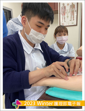來到臨床技能中心,我們發現它規劃的謹然有序,除了可以參觀不同科別的環境,也有很新穎的練習設備及預防針扎的設備,我們有練習靜脈留置針及放置導尿管,有了這次的模擬技術練習,能更加熟悉臨床上是如何操作各項技術,老師之前有使用護理部作業標準搜尋MAP,找到可以學習參照的技術標準,搭配親自示範,後我們即可每位同學輪流上場操作練習,這也是跟以前實習不一樣的學習之處,讓我們在實習技術上更安心及踏實,之後老師帶著我們學習如何順利的打上病人的留置針,包括綁止血帶、握針姿勢都一一幫我們調整,這些雖然都在學校有上課過,但是從沒有仔細的自己經歷過,老師要求我們要自己從備物到完成施打整個流程順暢才能輪替下一位同學,這樣一來我們能實際體驗並有機會修正細節,很感謝有這樣的機會,希望這樣的紮根學習,未來我們能讓臨床的病人受益,聽老師說臨床技能中心,除了可以讓實習生技術練習,職場上的醫護人員也會藉由此空間練習各項護理技術、手術方式、CPCR演練、推動客觀結構式臨床技能測驗(OSCE),維持醫護的專業能力,感覺醫院很用心在培養專業人才,希望這樣的課程能延續下去給我們的學弟妹,讓大家都能有可以親近臨床又確實技能訓練的場所,我們是一群熱切想將護理做好的學生,希望在技術上的細節能掌握好,也漸漸能完善自己的臨床判斷能力,在練習操作時,老師會將可能臨床情境說出來,讓我們試著回應問題,過程中老師和同學們也會即時提醒自己該注意但沒注意到的地方;這樣互動回饋的過程,可以刺激我們思考及練習溝通,做中學,印象更深刻。期望自己在面對病人時,能多一份從容;放下緊張的心情,轉為利他及關愛的精神,相信沒有人是一次就學會的,必須透過很多次的練習,謝謝醫院及老師安排知學用合一的學習過程,祝願我們即將展開的護理工作能愈來愈順利。