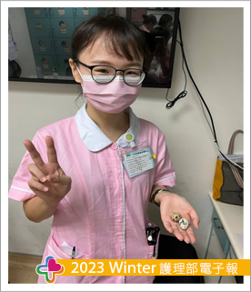 奇美醫院是個有很多不同照護機會的醫院。在學校時,上到護理的國際化,我在7A實習臨床照護病人時,還真的遇到一位講英文、菲律賓籍的病人,為剛好在我的段落,這次帶我實習的陳凱莉老師,問我是否願意試著照顧?英文沒自信的我很猶豫,但是,老師說,隨著國際化,遇到外籍病人會越來越常見,你現在有學姊跟老師協助你,這樣的學習機會,如果不把握,畢業以後,遇到外籍病人,你就要靠自己了。在老師的鼓勵下,我就鼓起勇氣把握這難得的機會,回去趕緊複習醫護相關英文,隔天在與病人建立關係時,因為第一次我相當緊張,老師很用心的帶著我去向病人自我介紹。