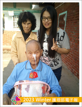 經常,在我腦海裡浮出的畫面,是自己的阿嬤不畏辛苦地照顧阿公,往往我看著阿嬤疲憊身影,總會感到不捨及難過,其實老人家們的需求不多,一些些「陪伴與關懷」就能讓他們感受到安慰與滿足,很榮幸在我的臨床護理工作中,對待病人所付出心意能得到病人及家屬的認同,這讓我知道付出是值得的,也讓我在護理領域裡有滿滿的信心及歸屬感,這將是支持我繼續走下去的動力。