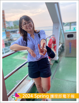 寧靜的週日早晨,護理站不似周間人來人往,我正努力著每週一次的出院準備服務複篩,身旁時不時出現ㄧ兩位病人來磅體重,而就在這時,她出現了,看似瘦弱,頭髮花白的很勻稱,左手臂披著一條完全沒有支托功能的三角巾,不搭嘎的掛在脖子上,隱約從病人服寬鬆的領口可以看到左鎖骨下貼著紗布,從早上的交班內容中我不難臆測她是哪一床病人,在看護的陪同下,她步伐穩健的來到我身旁磅體重,簡單的道早後開始測量,「阿嬤,賀啊,48.2公斤」、「阿娘喂,那欸加重」(怎麼這麼胖),我笑著回應她再不吃胖一點,颱風天一到會被吹著跑,隨後她給了我一個大大的陽光般笑容,這是我們相識的過程。