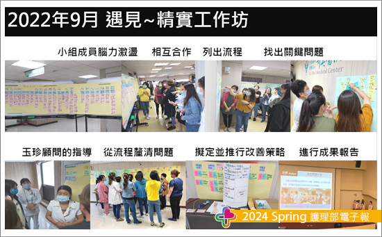 2022年9月參與護理部護品委員會舉辦的「精實工作坊」,內科伙伴透過腦力激盪選定了「改善內科病房檢體溶血率」主題,跟著李玉珍顧問運用「精實-防錯技術」,從檢體採血技術列出所有相關的步驟與流程,一連串抽絲剝繭的過程中,以重要性、頻率及成本找出關鍵問題。短短兩天的學習做足了流程分析、釐清問題、擬定改善策略、製作教具及小組分享,改善計畫完成後邀請臨床護理師參與說明與討論,讓後續改善計畫的推動更符合臨床實務。