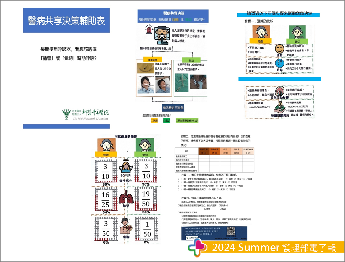「長期使用呼吸器,我應該選擇「氣管插管」或「氣管切口」幫助呼吸?」的運用希望能造福更多需要的病人/家屬,透過本次優化發現收案對象過於廣泛,未有明確界定點,易造成無法精準挑選執行對象,透過優化後的介入,收案對象更加明確,且收案率大幅的提升,且團隊間表示收案的耗費時間降低。此外,增加針對受測對象提供個別性的工具進行說明更能有效率的達到雙方需要的成效。