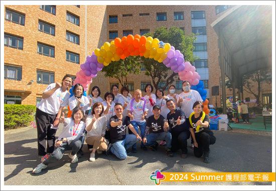 活動演出邀請三味曲走唱團來帶動現場氣氛,帶領大家發自內心的稱讚,誠心的肯定對方的美好,一起散發出閃亮的光,愛一個人就應當從讚美開始,現場隨即邀請一對高齡老夫妻說出對彼此的愛,最後來一個甜蜜的臉頰親吻,讓老夫妻樂到合不攏嘴,我依然記得他們紅咚咚的臉得到了現場所有人的祝福,還有從未間斷的歡笑聲!突然一個轉身往二、三、四樓層一看,驚喜發現有一群住院病人及家屬無法下樓同樂,但他們都很熱情守在病房窗戶旁與我們同在,蕭部長帶領我們大夥兒轉身向隔著一扇窗的人群們招手吶喊加油打氣,再度營造出一片和樂融融的愛與關懷。