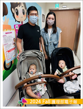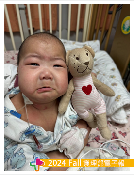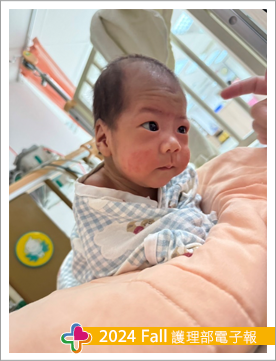 在一個接近大小夜班交接的夜晚,我們接收到產房待命的消息,是一對30+6週的龍鳳胎,兄妹們雖然出生週數和體重不足,在加護病房中需要依賴呼吸器和點滴輸液才得以維持生理所需的能量,兄妹們似乎知道有彼此的陪伴,互相鼓舞各自努力著,小毅(哥哥)和小霏(妹妹)兄妹倆狀況循序漸進的成長,呼吸器設定逐漸調降、進食消化狀況趨於穩定,眼看著兄妹一起往回家的方向努力前進著。那天,原本總是活力飽滿的小霏突然病懨懨的、消化狀況變差了,連平時最愛的奶嘴也失去吸吮的慾望,猝不及防壞死性腸炎偷襲了小霏的腸道系統,以不成熟的器官要對抗突如其來的大軍簡直是場硬戰,敵軍來勢洶洶,使得小霏其他器官連帶影響潰不成軍,醫療團隊在第一時間做了緊急處置及手術治療,然而面臨如此嚴重感染的小霏仍一蹶不振,頻頻跟死神拉扯著,但大家都相信小霏一定可以恢復往日活潑好動的模樣,悉心照護之下,小霏病況逐漸好轉,眼看著狀況緩慢穩定的時候,敵軍再次入侵,壞死性腸炎的合併症肆虐著小霏的腸道系統,為了打贏這場戰,醫療團隊與小霏同仇敵愾決定奮戰到底,這是第二次進手術室。經過上次的經驗後,這次大家都繃緊神經面對術後的照護,而小霏也不負眾望逐漸的恢復過往調皮的模樣,原以為可以在住院期間完成第三次手術-關閉造口,因小霏體重不足且腸造口周圍皮膚狀況浸潤嚴重,甚至無法黏貼造口袋,醫療照護上歷經許多困難挑戰,最後與家屬討論後,雖然造口照護十分不易,醫療團隊們擔心父母們力不勝任這份照護工作,但仍決定先學習返家相關的照護,讓小霏把軍糧儲備好後再來應戰,歷經住院近4個月,兄妹倆終於能再次團聚,返家照護兩個月期間,父母親的照護品質證明了大家杞人憂天了,再次看見小霏的時候,原來水汪汪圓滾滾的雙眼,因為豐腴的臉頰肉,使得眼睛被擠壓得快要張不開來,米其林般的模樣讓大家都忘記她曾是30+6週的早產兒!第三次的手術也代表著小霏即將畢業,裝滿軍糧和火力十足的她果然眾望所歸,術後狀況恢復良好,如今調皮和吃貨般的模樣,讓人無法想像,未滿一歲的她,曾歷經的大風大浪,小小肚皮上條條的手術疤痕,證明著她乘風破浪過關斬將。