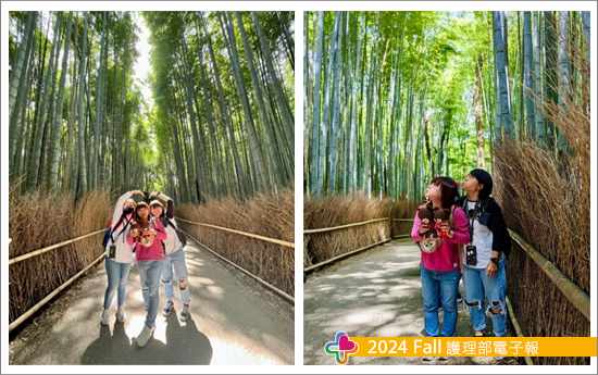 第五天來到京都必去景點《嵐山》-渡月橋、野宮神社、Miffy麵包店、嵯峨豆腐稻本店、% ARABICA咖啡店,對於豆腐有障礙的我,竟然沒有吃到豆味,Miffy麵包&周邊商品真的蠻可愛,神社更不用說了,每間都有祂莫名的美、跟臺灣的寺廟風格很不同!在一段上坡下坡行走後,看到竹林的我詢問為何來這?跟台灣溪頭不同?團長翻白眼的說這裡是日本知名景點『竹林小徑』內,然後我看到許多人力車載著穿著和服的夫妻檔前來拍攝婚紗照!閃過一車車的人力車後突然也感受到大自然的奧妙及壯觀與自己的渺小!!