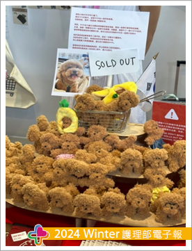 看到成堆的紅貴賓狗狗手工玩偶整齊地擺放在攤位上,呈現一團毛茸茸(確實很像炸雞)的景象,相當療癒,但是太熱門了,Mori玩偶供不應求,每日皆有限定販賣的數量,只有在一開始進場的人可以購買到。