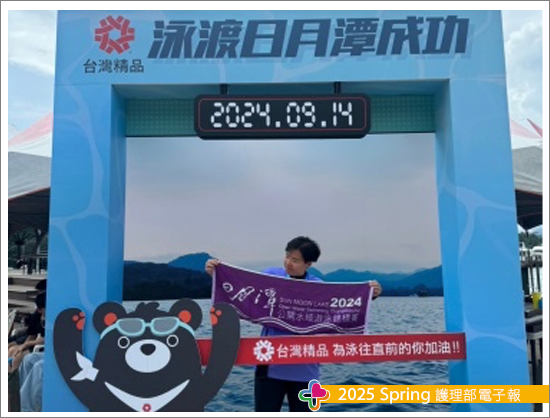 上岸後拿了獎牌、獎狀,領了便當,喝上一杯冰冰涼涼的日月潭阿薩姆奶茶,總算是轉移了潭水的滋味,我想著,人生中會經歷些苦難的環節,不就是為了襯托享受時刻的美好嗎?此次日月潭泳渡行,很開心自己完成了一件大事,結局是令人滿意的,過程的精彩時刻及辛酸血淚,至今仍讓我津津樂道,我想,年輕就是要這樣熱血且揮灑汗水吧!那就決定明年,玉山峰頂見!