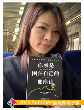 第一眼看見書名,深深被這11個字擊中內心:「你就是困住自己的那座山」。當時碩士班二上學期,研修護理研究、應用護理統計及實作、長期照護特論實習,以及居家訪視工作,我感覺自己無力招架、身心俱疲,被無窮無盡的責任與壓力推著走,加上論文進度停滯不前,指導教授甚至委婉暗示我無法準時畢業。在學業、工作與生活間失去平衡的我,彷彿困在一座無法翻越的高山,看不到出口,內心滿是挫敗。那一刻,我決定購入這本書,希望為無助的自己找到解決之道。