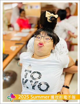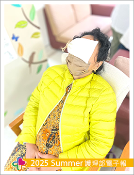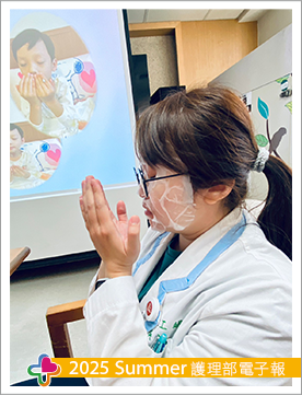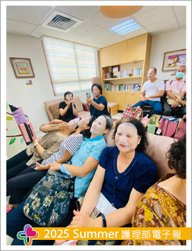 針對安寧病房、共照、團隊照顧者等,每週四下午一個小時的芳香療癒時間,給予由頭到腳身心靈的滿足,藉由玫瑰純露敷臉、呼吸練習、互相操作肩頸按摩、手腳自我按摩、手做眼敷包、美手水噹噹(手部去角質)、肩頸按摩舒壓等主題搭配,讓病房照顧者能在芳療的薰陶下得到舒壓與療癒。