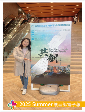 透過此次參與日本NP學會學術集會,我深刻體會到跨學科及國際合作的重要性。未來,我計劃將所學內容融入到臨床實踐中,例如結合智能化設備提高病患的足部健康管理效果,並推廣健康教育以改善患者依從性。同時,也希望能參與更多國際性學術活動,持續提升自己的專業能力,並為本地護理的發展貢獻一己之力。