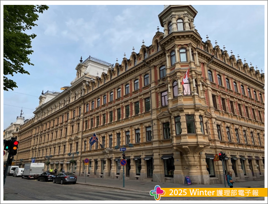6月9日開幕當天,我特別感受到赫爾辛基便利的大眾運輸系統。由赫爾辛基地區交通局(HSL)營運,涵蓋赫爾辛基、艾斯波、萬塔三大城市,包括火車、地鐵、路面電車與公車。交通票分為A、B、C、D四個區域,ICN註冊證已包含HSL交通使用權,且多數車站無閘門,直接上車即可。一抵達市區,看到其他東方面孔時,大家總會會心一笑地說:「你們也是來參加ICN的吧!」就這樣,我們也結識了來自世界各地的護理同好。開幕當天,我們拖著23公斤的行李,在傾盆大雨中穿梭街頭,又冷又餓,模樣相當狼狽。抵達預定的青年旅館時,因採自助Check-in,需等候房東傳送密碼才能入住。就在門口等待的時候,我們遇到一位來自其他國家的與會者,彼此交流旅程與參會經驗,也感受到文化差異所帶來的各種對話與互動。這些交流雖然偶有驚訝與困惑,卻也讓我更深刻體會到在國際場合中溝通與理解的重要性。