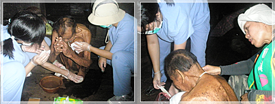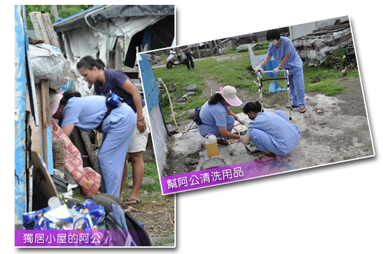 | 阿嬤好不容易接受我們提出身體清潔的建議 |