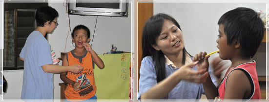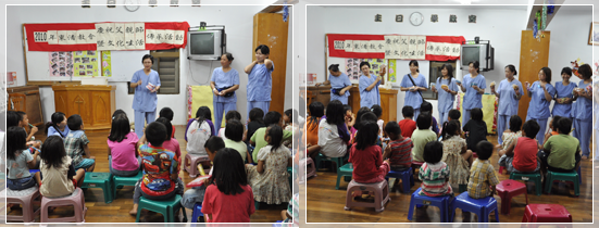 一天就聽說週日會有主日學,一聽到有小朋友,筱蓉老師當然不放過這絕佳的衛教機會。對於孩子,我們能給他們什麼呢?在前一晚的討論中,淑蘭提到蘭嶼的孩子其實很幸福,在蘭嶼因為核廢場的關係,台電無條件供電,所以用電不用錢。因為偏遠地區的關係,醫療不用錢。政府給了蘭嶼居民許多社會福利,因此,蘭嶼的孩子們越來越不懂得珍惜資源。經過兩天的服務後,大家開始對蘭嶼的達悟族人,有了些認識。於是,穎俐提出一個想法,如果我們能孩子們從小就知道如何照顧自己,也讓他們了解自己是可以有能力照顧其他人的。或許在不久的未來,許多達悟的禁忌慢慢就會改變了。因此,我們決定以最容易入手的口腔保健衛教做起,讓孩子們學會正確的刷牙方式,甚至回到家可以當小老師,教家人正確的刷牙方式。