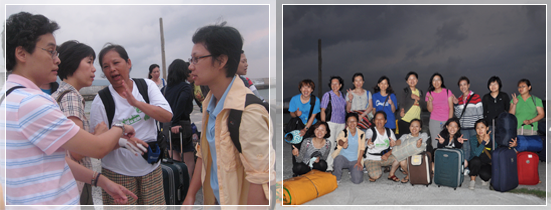 | 歷經暈船痛苦,下船發現醫服社憶萍督導等三人遠從台南至後壁湖接我們,真是超感動! |