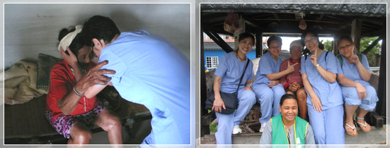 另外一個阿公也是差不多的狀況,無法自由行走,睡在潮濕的環境當中,霉味四散,睡在發霉的棉被與枕頭上,他無力照顧自己,雖然靠兒子三餐會送餐,但是他居住的環境真的很糟糕,我們表達想幫他整理的意願,但是阿公拒絕我們了,因為我們對他而言,是外人不是他的兒子,連女兒要幫他都不行的,身體清潔更不用說。以上這些案例不能說他們的兒女不孝,是因為當地的文化關係,病人本身的文化存在,讓他們選擇自己的生活方式。