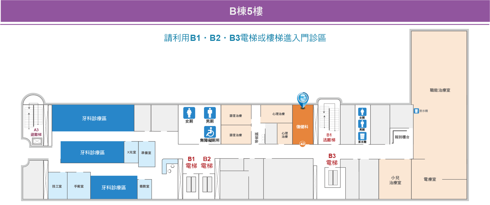 復健科:位於B樓5樓
