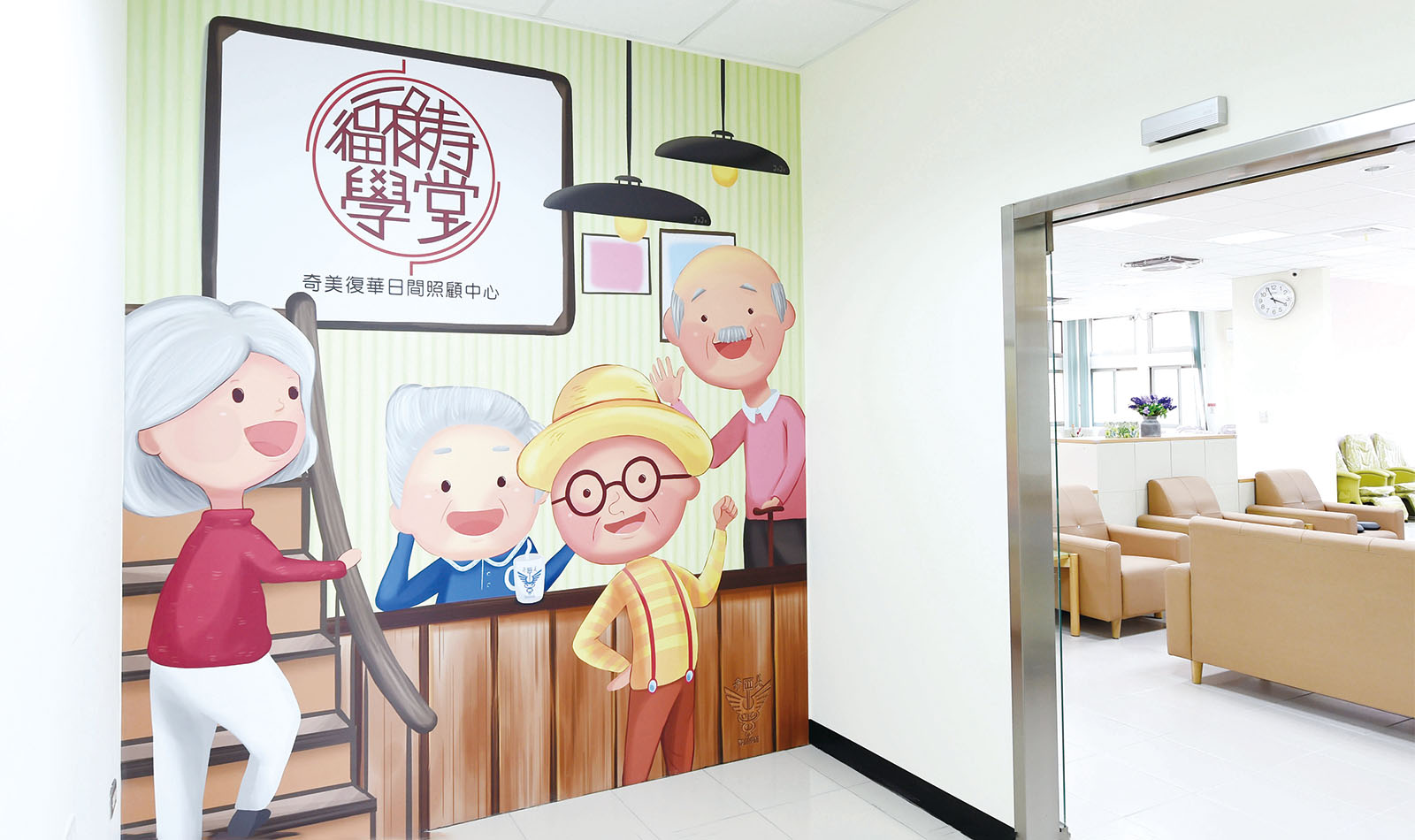The Chi Mei Fuhua Adult Day Care Center, located on the second floor of the Fuhua multiuse community center in Yongkang, provides a number of care plans, such as personal care, daily living training, and art & craft activities. There are physical therapists and doctors providing on-site consultation and care. Approximately 37 seniors receive the services per month.