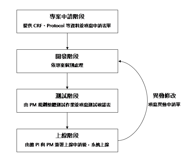 帳號/權限及電子表單申請一律由專案經理(Project Manager)或總計畫主持人(總PI)提出申請。 3.