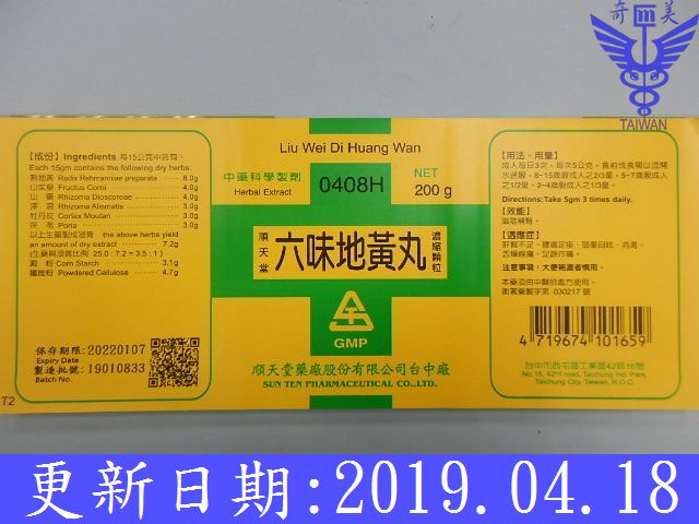 熟地8、山藥4、山茱萸4、茯苓3、澤瀉3、牡丹皮3