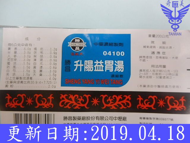 黃耆6、人參3、炙甘草3、半夏3、白芍1.5、羌活1.5、獨活1.5、防風1.5、橘皮1.2、白朮0.9、茯苓0.9、澤瀉0.9、柴胡0.9、黃連0.6、生薑3、大棗1.5